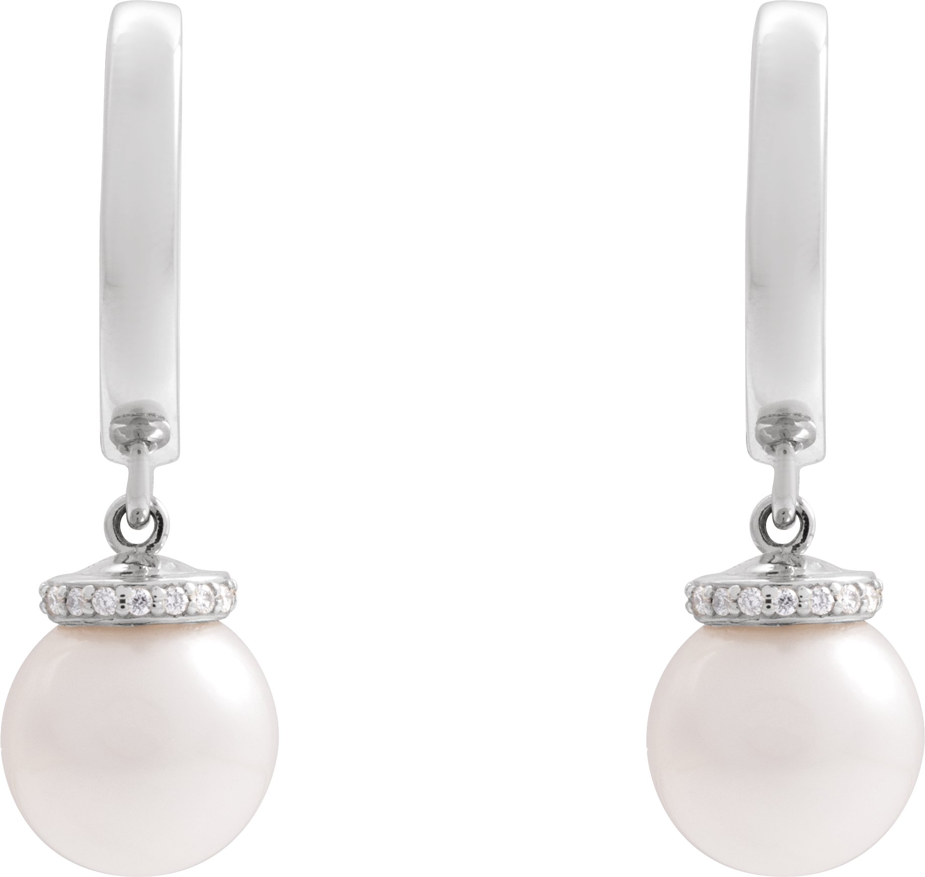Description: Akoya Pearl And .07 CTW Natural Diamond Hoop Earrings
