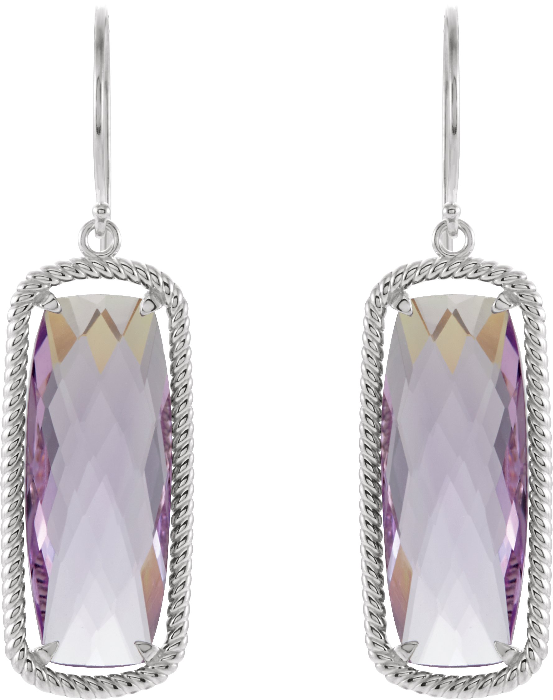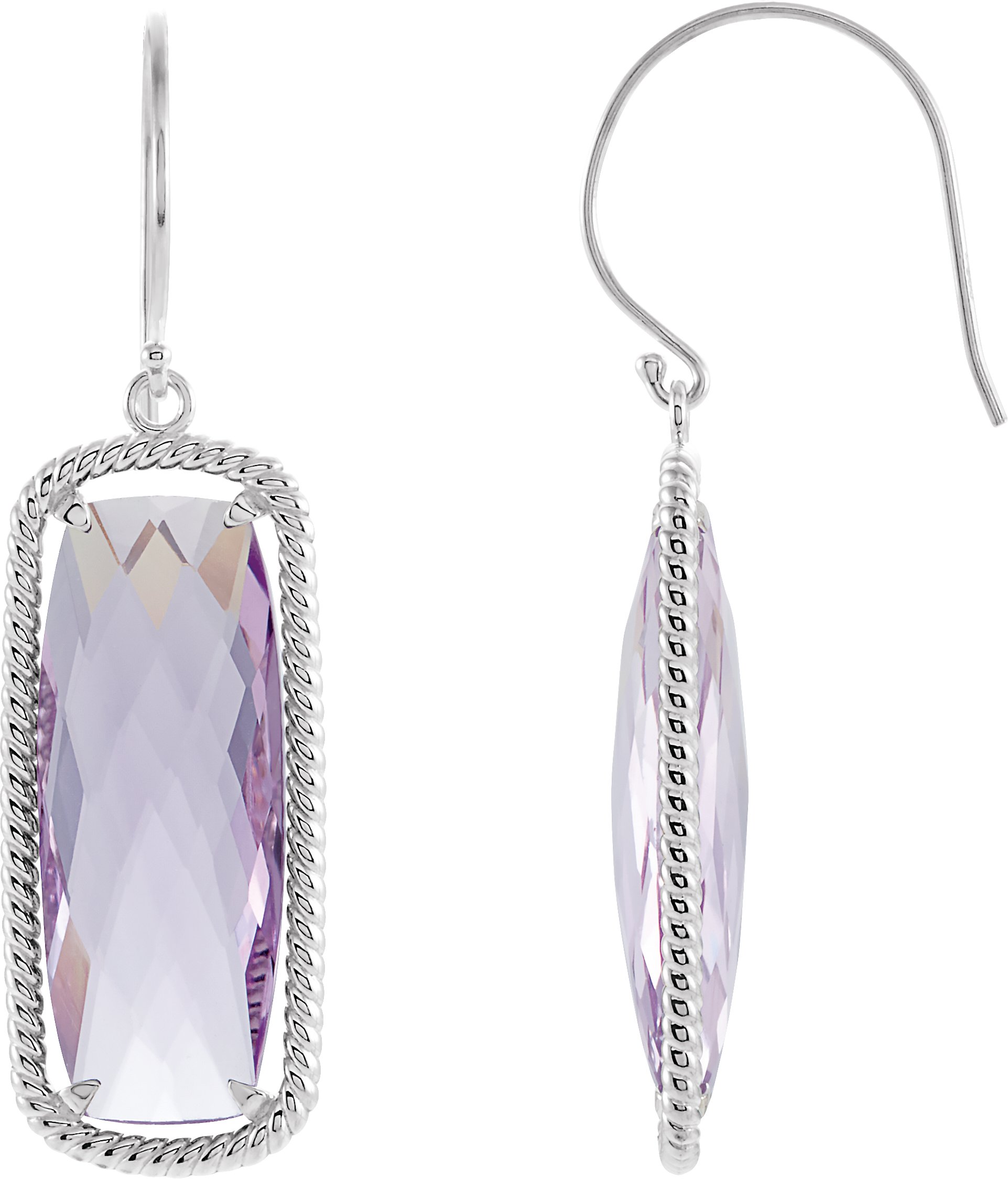 Sterling Silver Cushion Rose De France Quartz Rope Styled Dangle Earrings