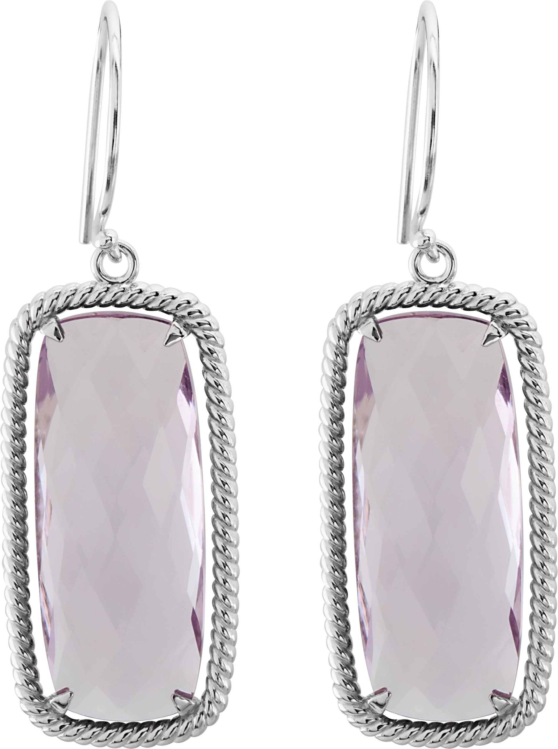 Sterling Silver Cushion Rose Quartz Rope Styled Dangle Earrings