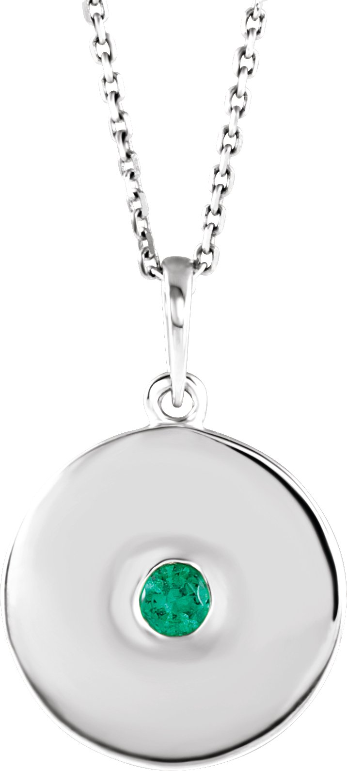 Sterling Silver Emerald Disc 16 18 inch Necklace