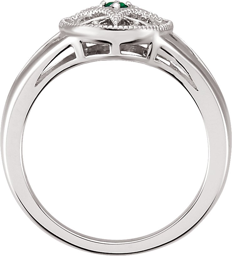 Sterling Silver Emerald Granulated Filigree Ring Size 6