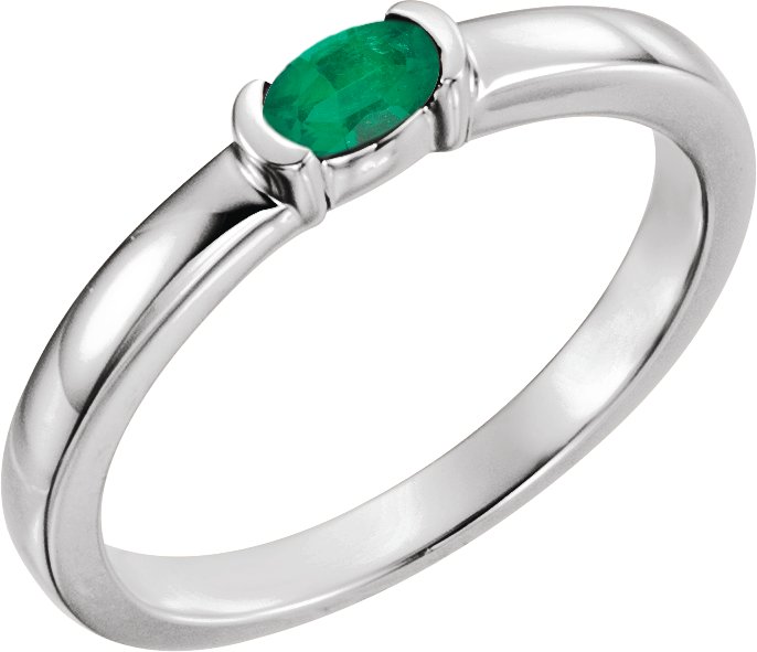 Description: Genuine Emerald Oval Stackable Family Ring