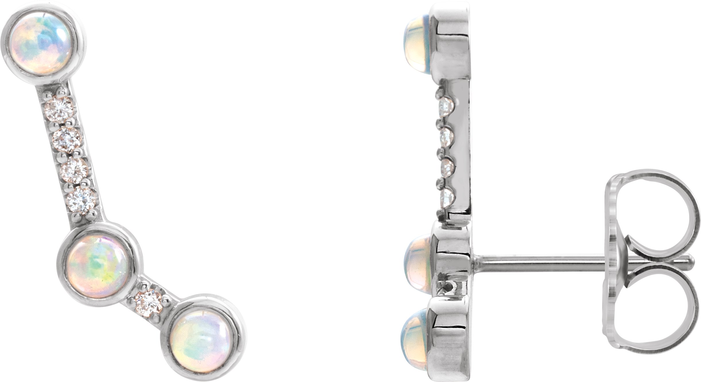 Description: Genuine Ethiopian Opal & .08 Ctw Diamond Scattered Ear Climbers