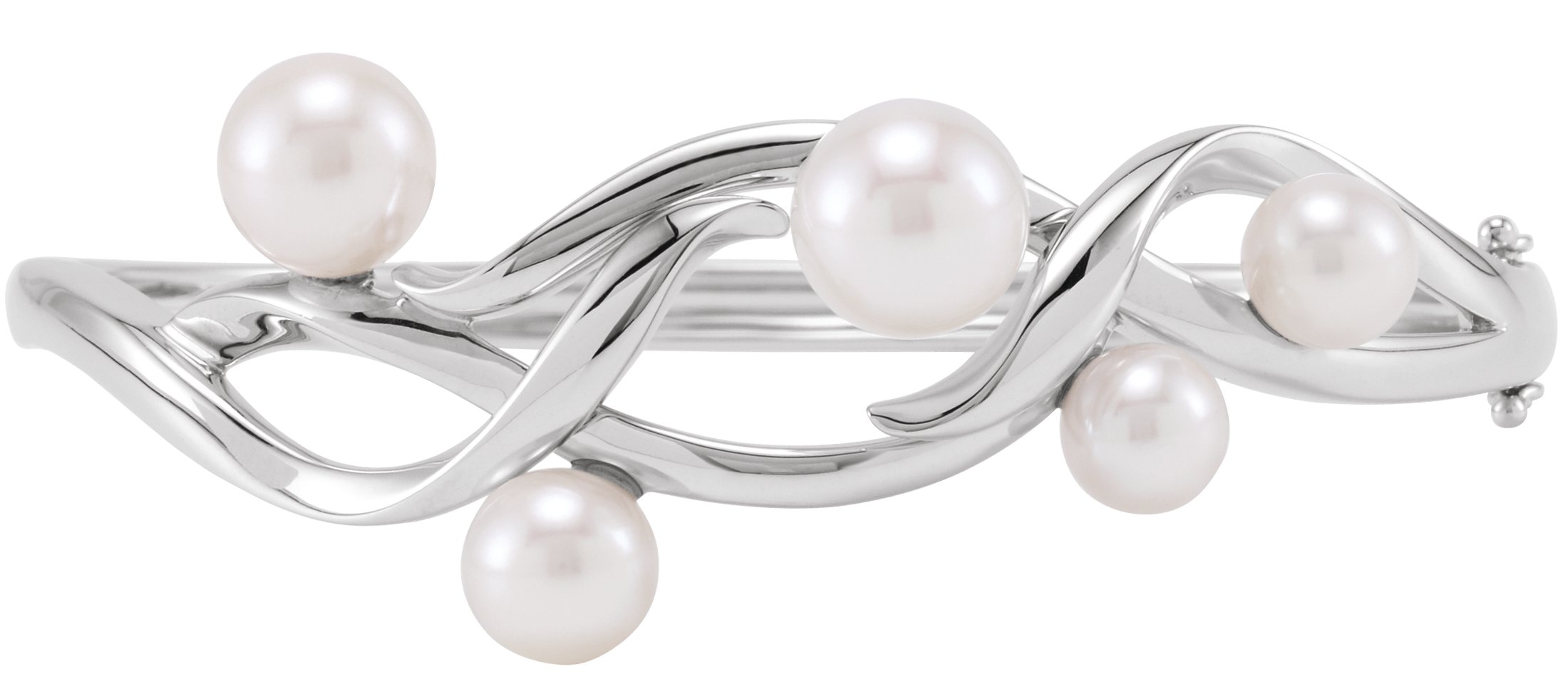 Sterling Silver Freshwater Cultured Pearl Bangle 6.5 inch Bracelet
