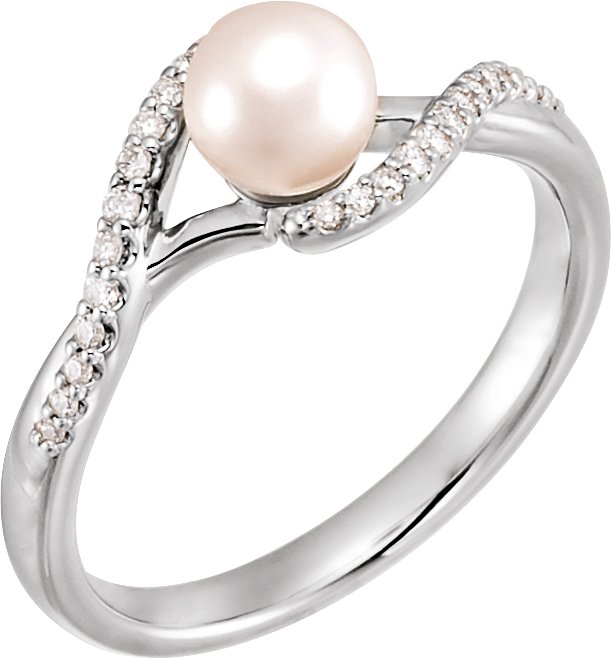 Sterling Silver Freshwater Cultured Pearl & 1/10 CTW Diamond Ring