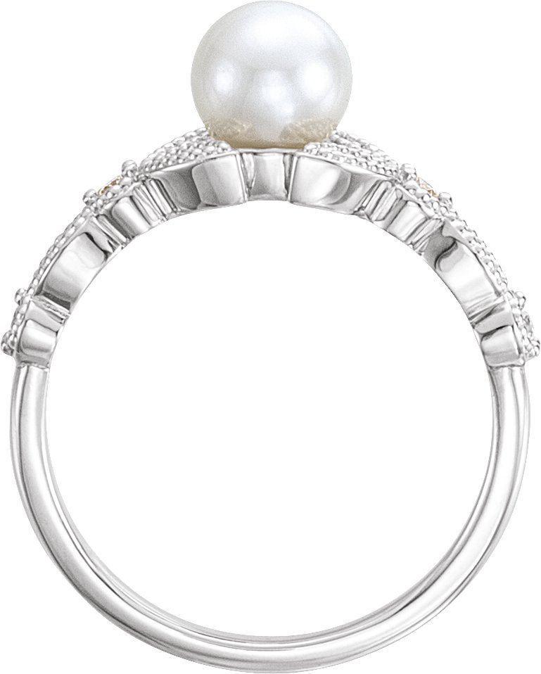 Sterling Silver Freshwater Pearl & 1/10 CTW Diamond Leaf Ring