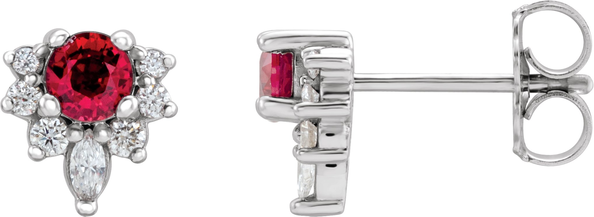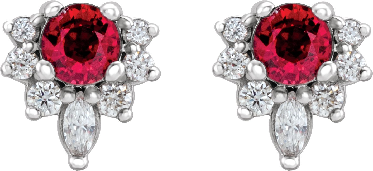 Sterling Silver Genuine Ruby and 1/6 CTW Diamond Earrings