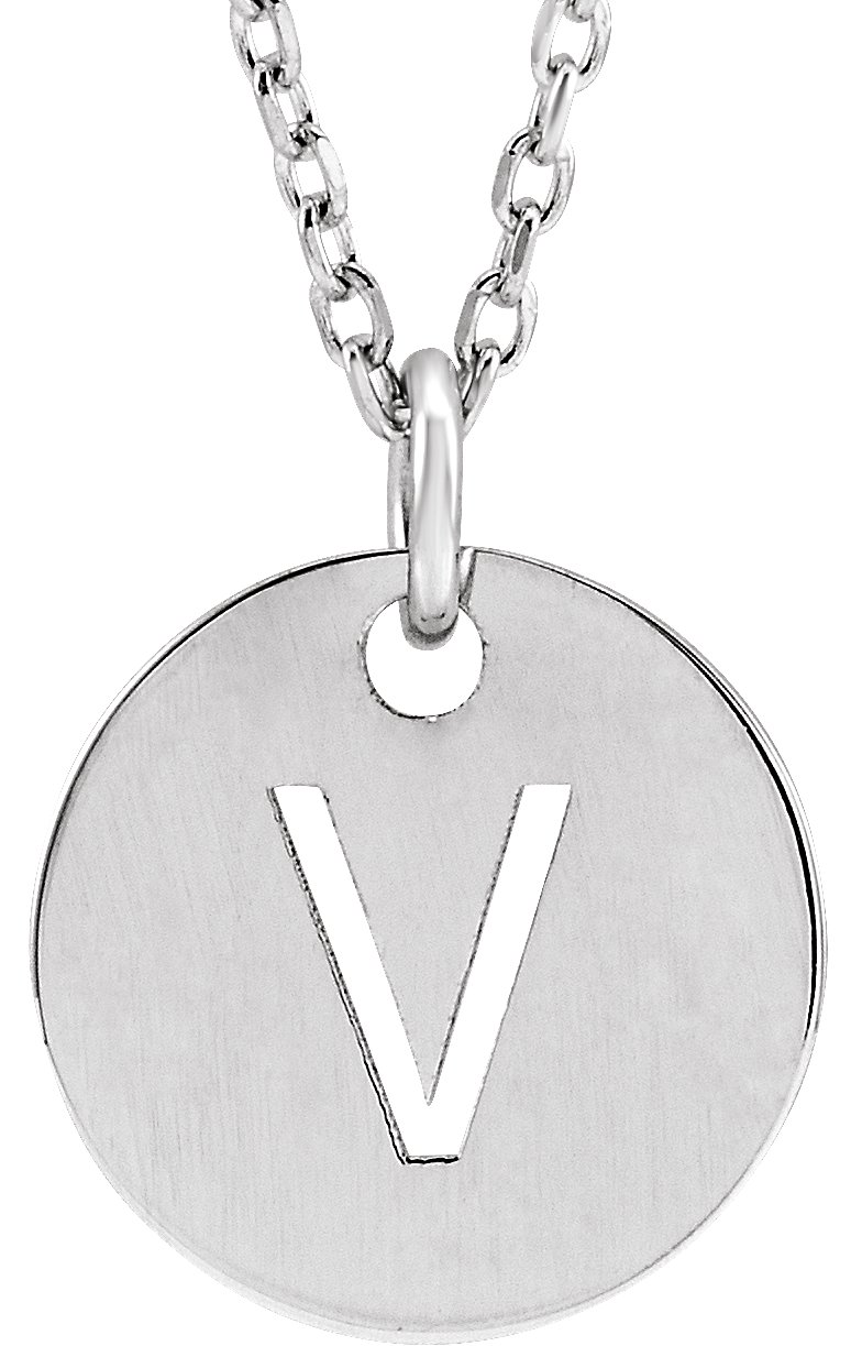 Sterling Silver Initial V 10 mm Disc 16 18" Necklace Ref. 16680442