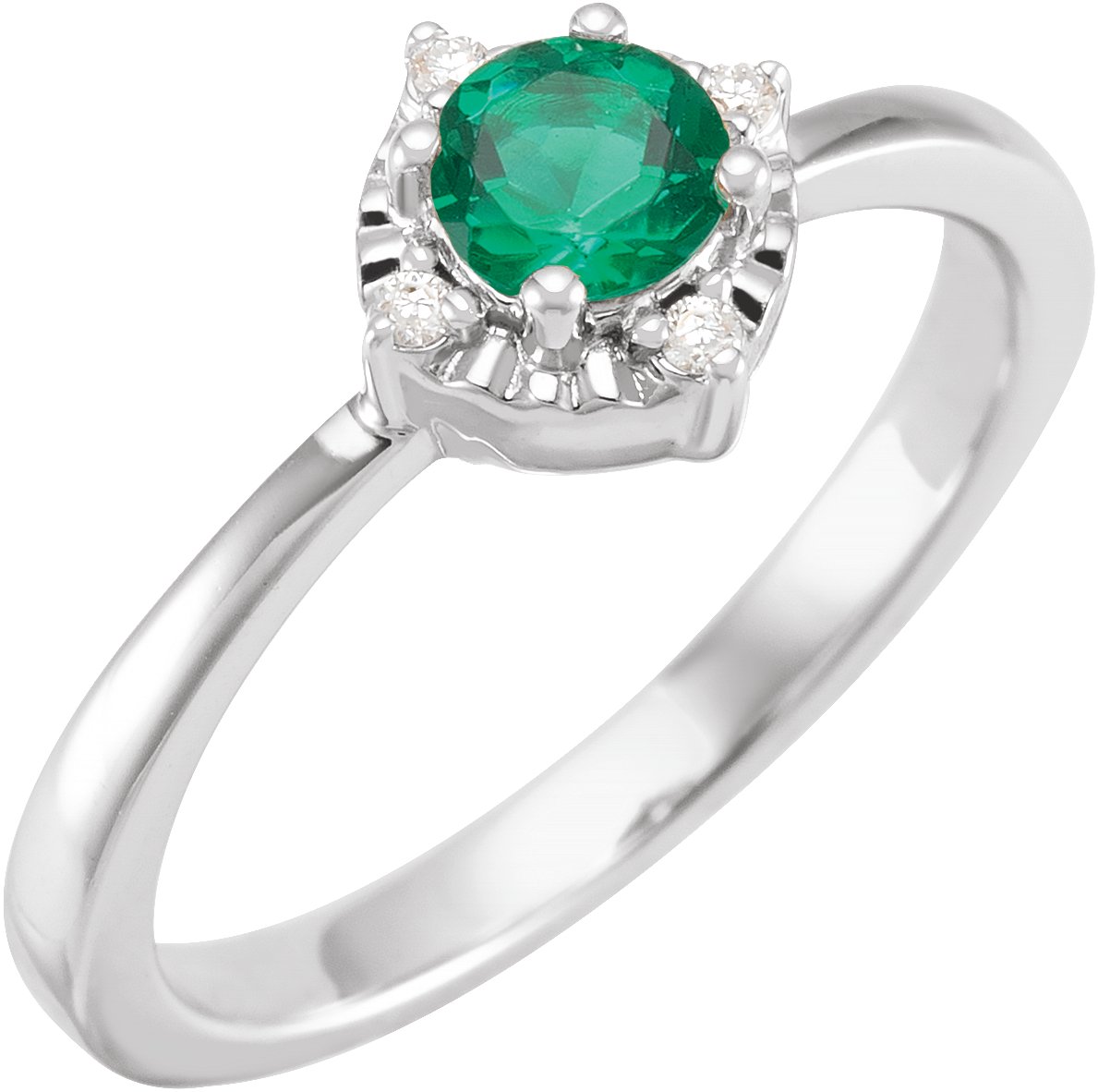 Description: Lab-Grown Emerald And .04 CTW Natural Diamond Ring