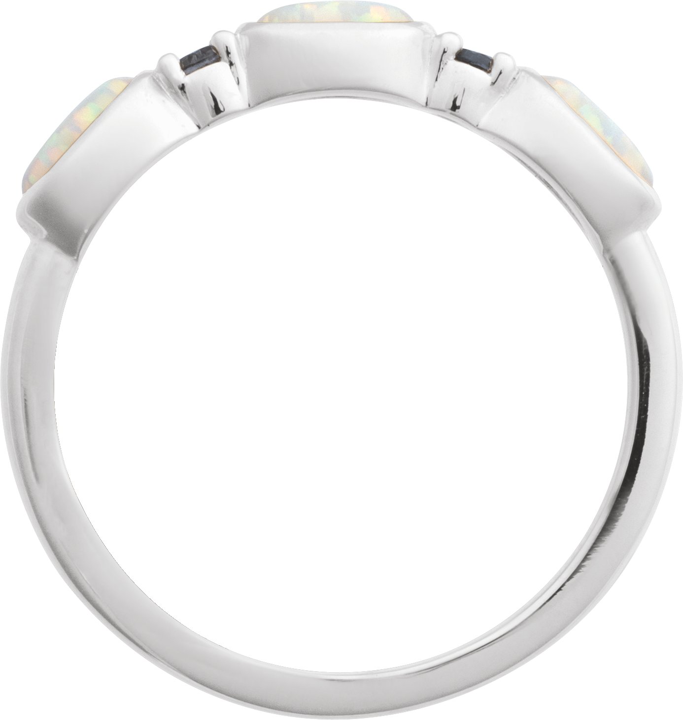 Description: Lab-Grown White Opal Cabochon And Natural London Blue Topaz Stackable Ring