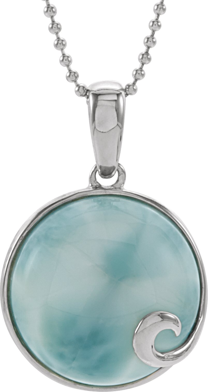 Sterling Silver Larimar Cabochon 18 inch Necklace