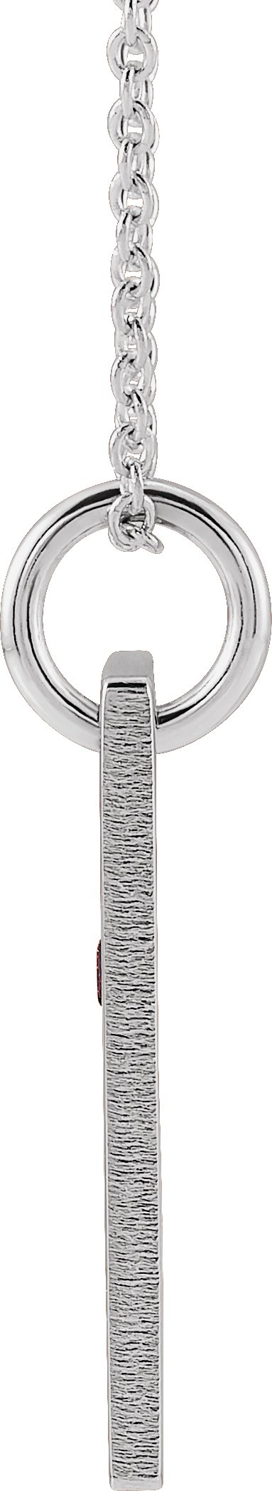 Description: Mozambique Garnet Vertical Bar Cross Necklace