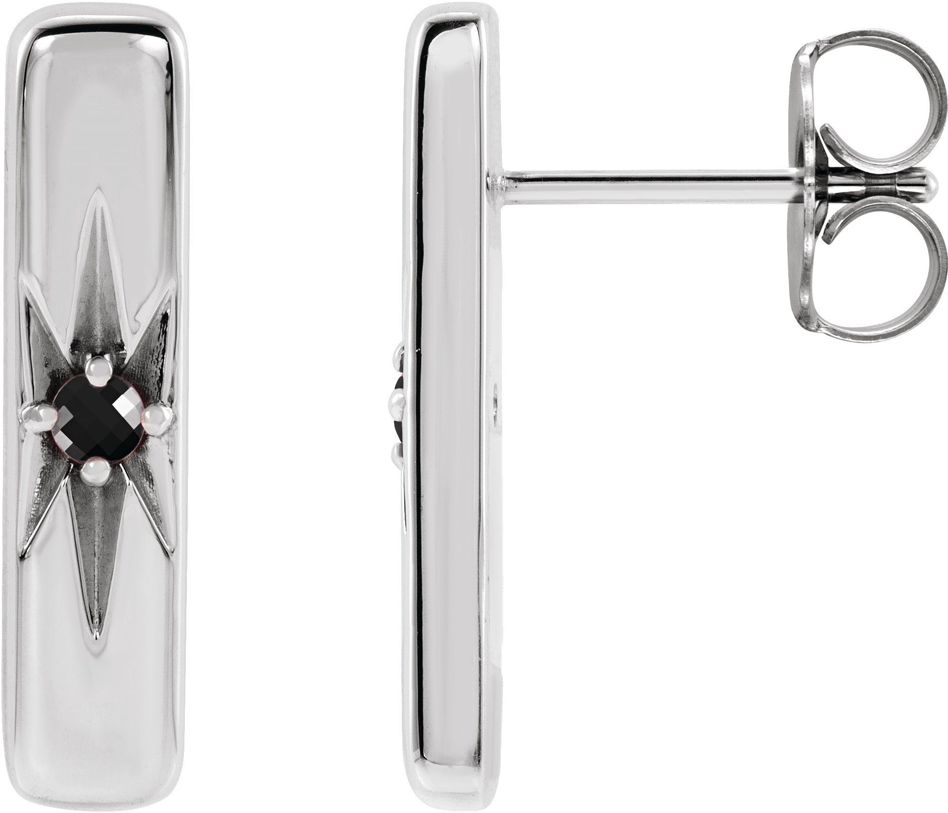Description: Starburst-Accented Bar Earrings