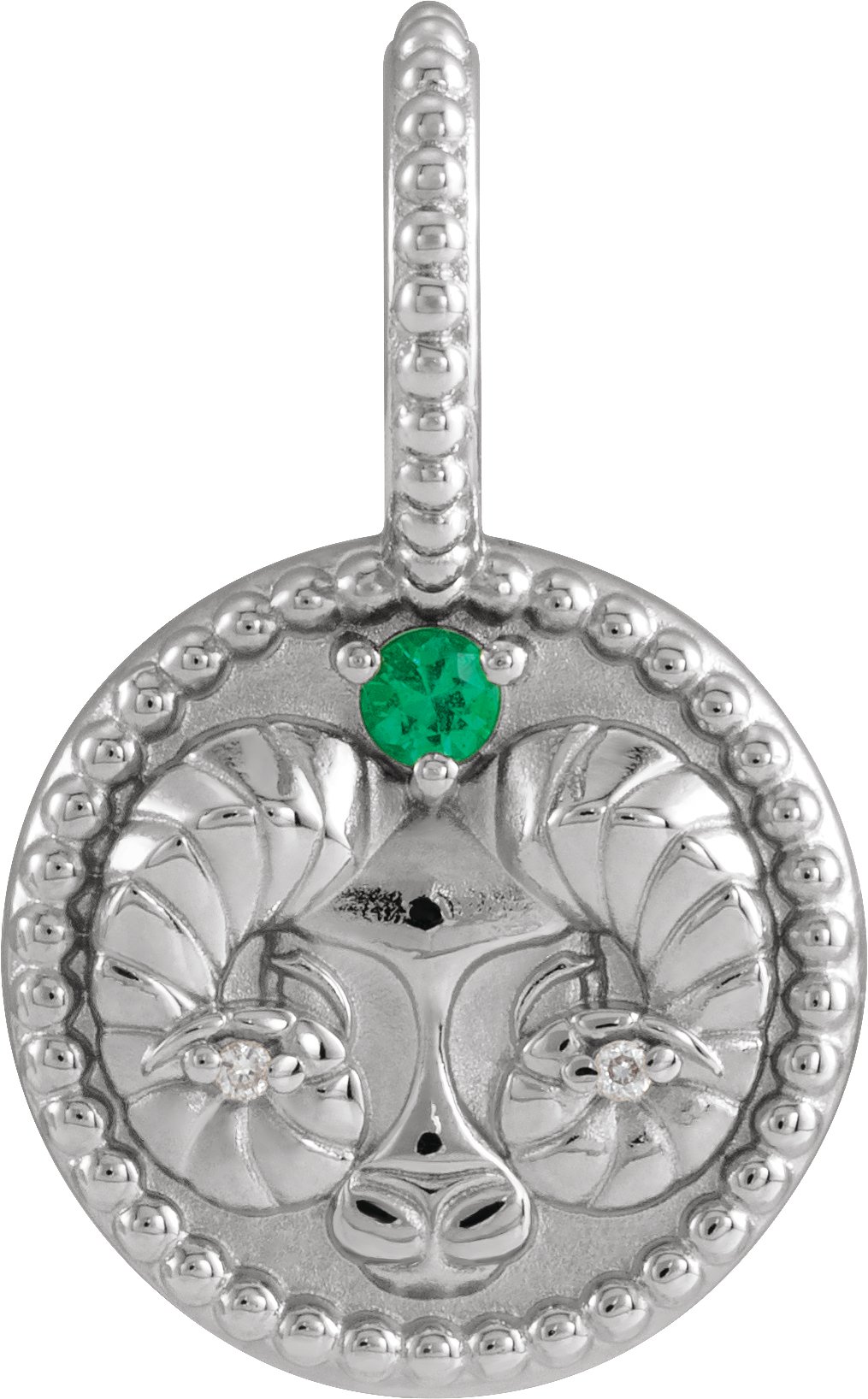 Sterling Silver Natural Emerald and .005 CTW Natural Diamond Aries Charm or Pendant Ref 19836105