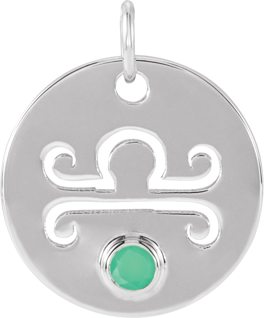 Sterling Silver Natural Green Chrysoprase Libra Zodiac Pendant Ref 17886702