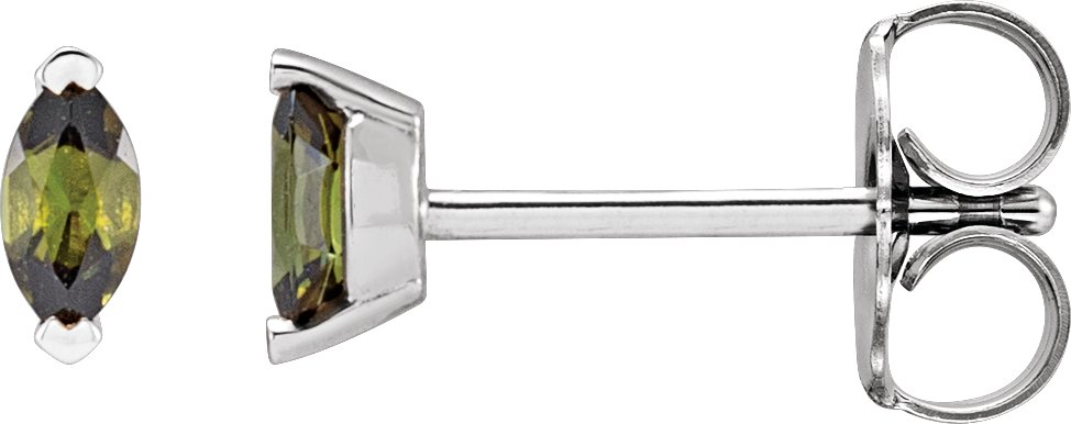 Description: Natural Green Tourmaline Solitaire V-Prong Earrings