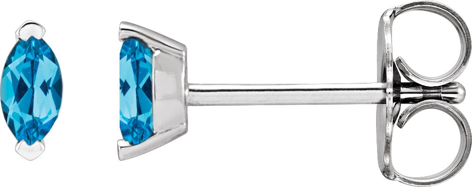 Description: Natural Swiss Blue Topaz Solitaire V-Prong Earrings