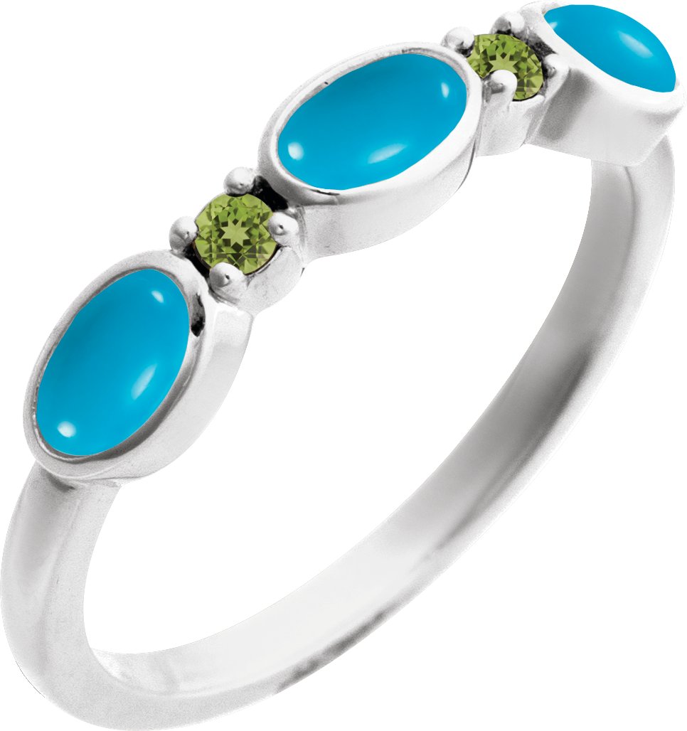 Sterling Silver Natural Turquoise & Natural Peridot Stackable Ring