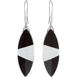 Sterling Silver Onyx and Clear Quartz Earrings