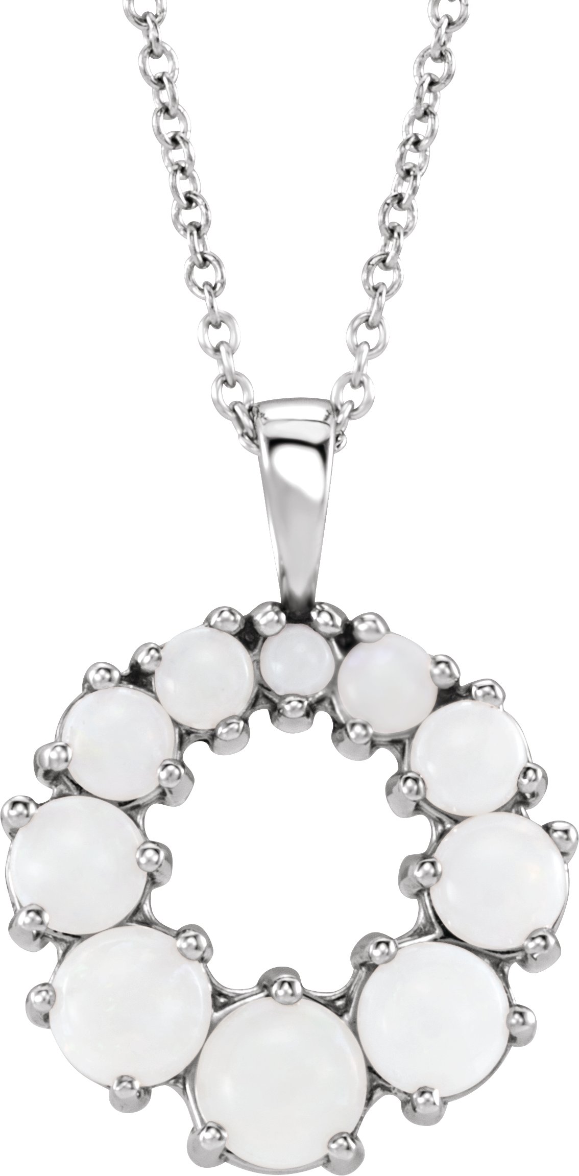 Sterling Silver Opal Halo Style 18 inch Necklace