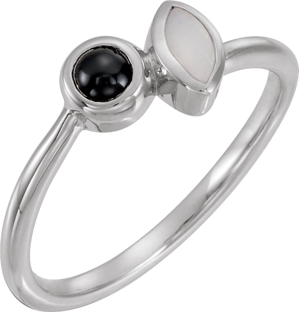 Sterling Silver Opal and Onyx Ring