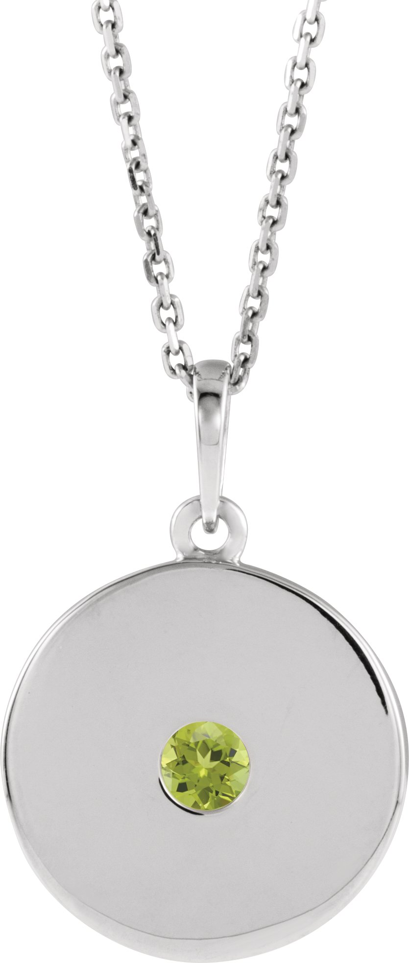 Sterling Silver Peridot Disc 16 18 inch Necklace