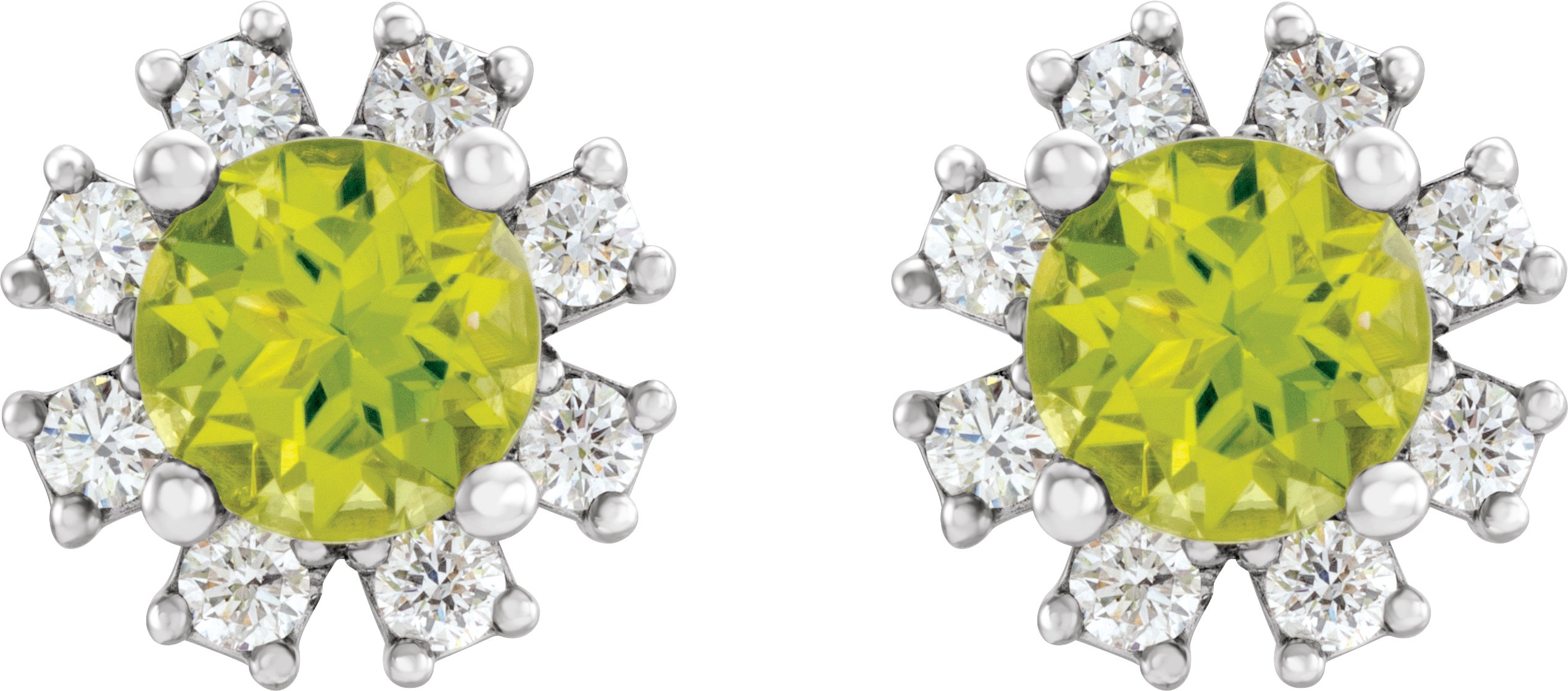 Sterling Silver Peridot and .20 CTW Diamond Earrings