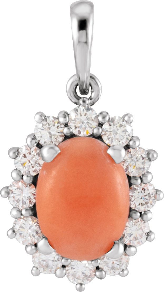 Description: Genuine Pink Coral And 1/3 Ctw Diamond Pendant