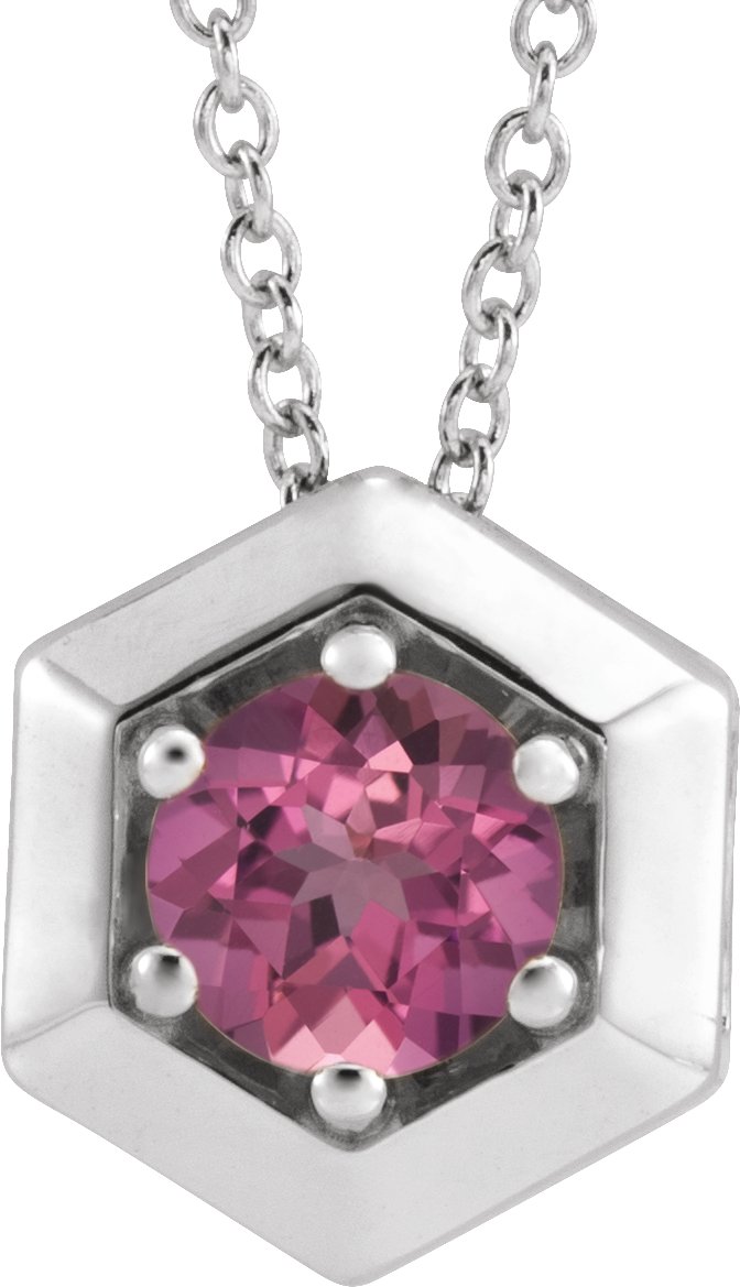 Sterling Silver Pink Tourmaline Geometric 16 18" Necklace Ref. 16628969