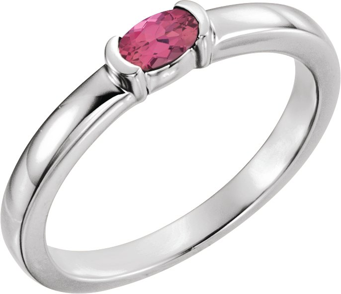 Description: Genuine Pink Tourmaline Oval Stackable Family Ring