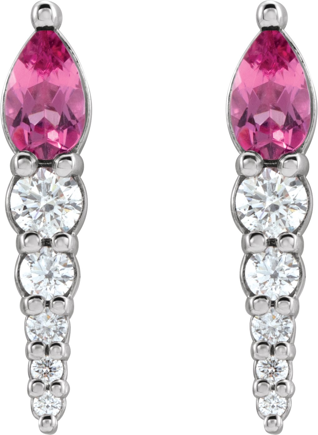 Description: Genuine Pink Tourmaline And 1/4 Ctw Diamond Earrings