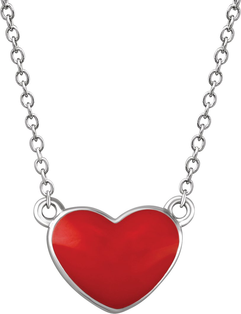 Description: Red Enamel 16-18 Inch Heart Necklace