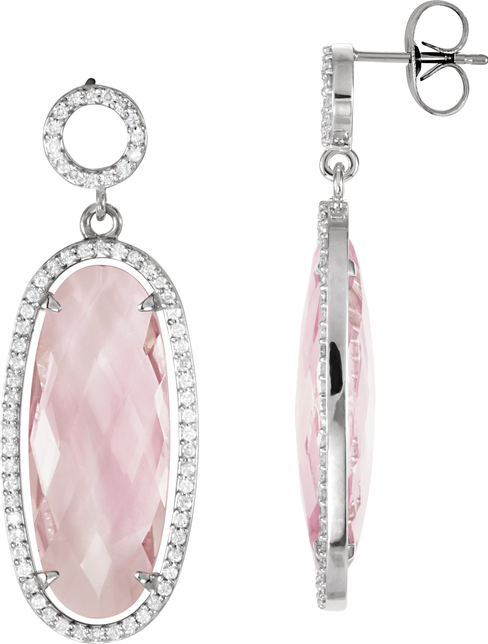 Description: Genuine Rose De France Quartz And 3/4 CTW Diamond Earrings