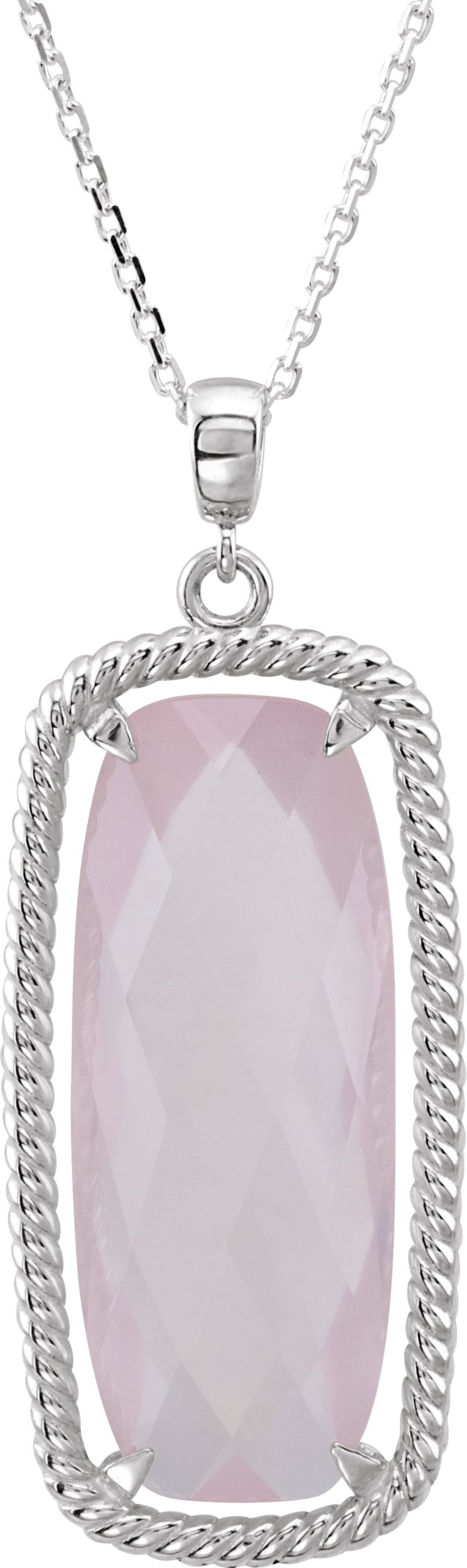 Sterling Silver Rose De Quartz Rope 18" Necklace Ref. 4958965