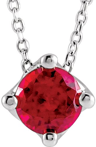 Sterling Silver Ruby Solitaire 16 18" Necklace Ref. 15609367