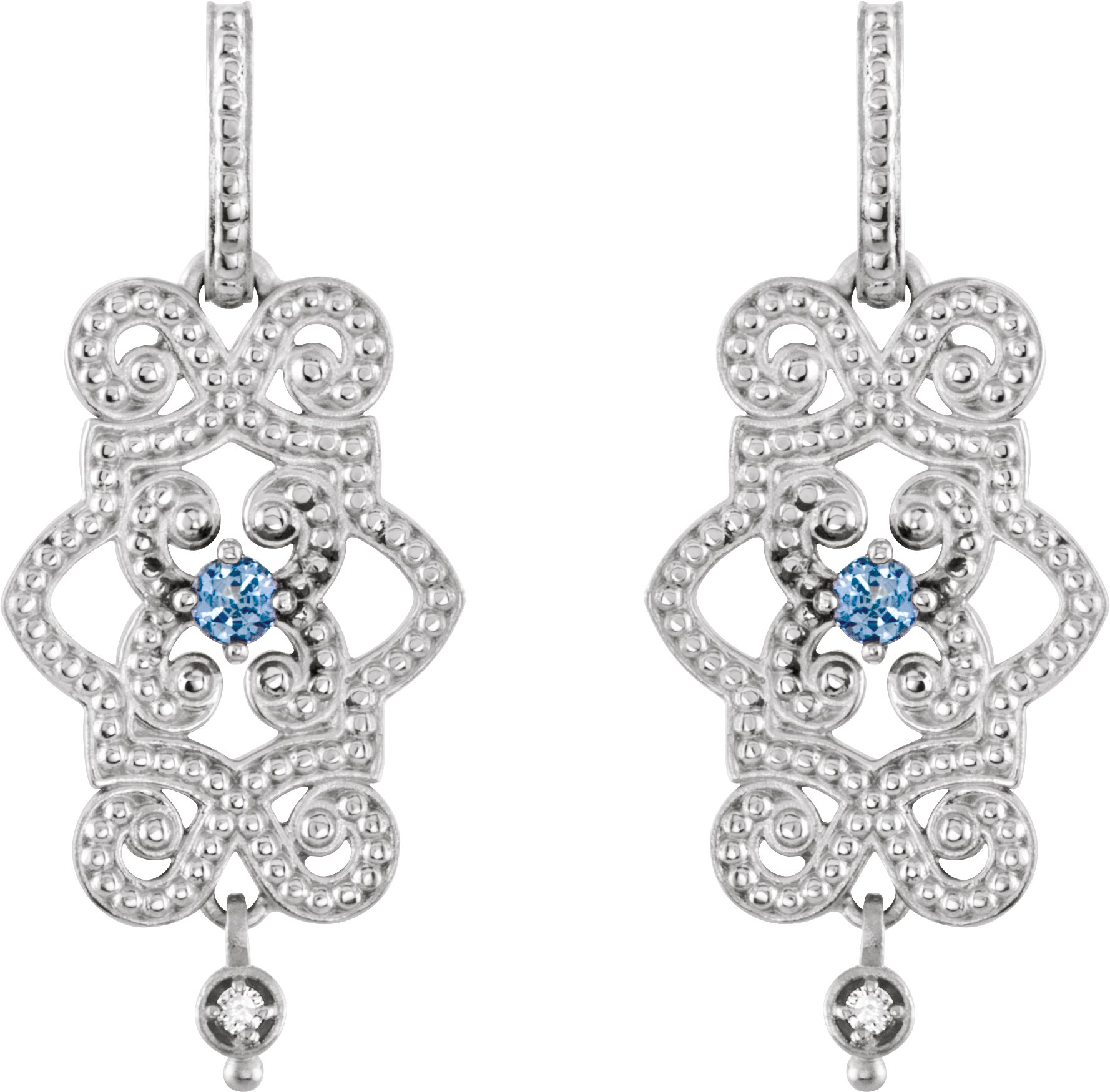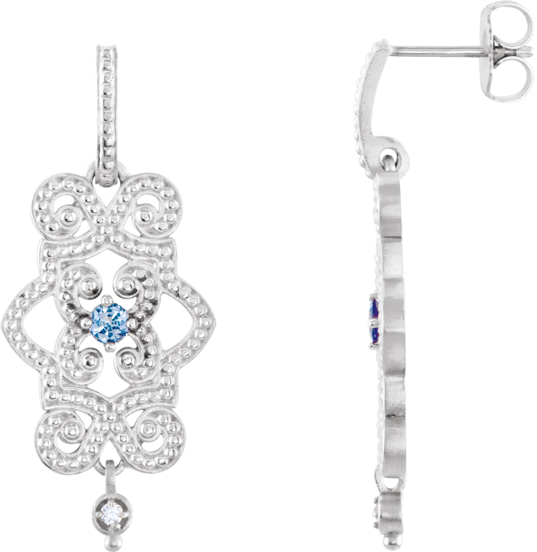 Sterling Silver Tanzanite and .03 CTW Diamond Granulated Design Dangle Earrings