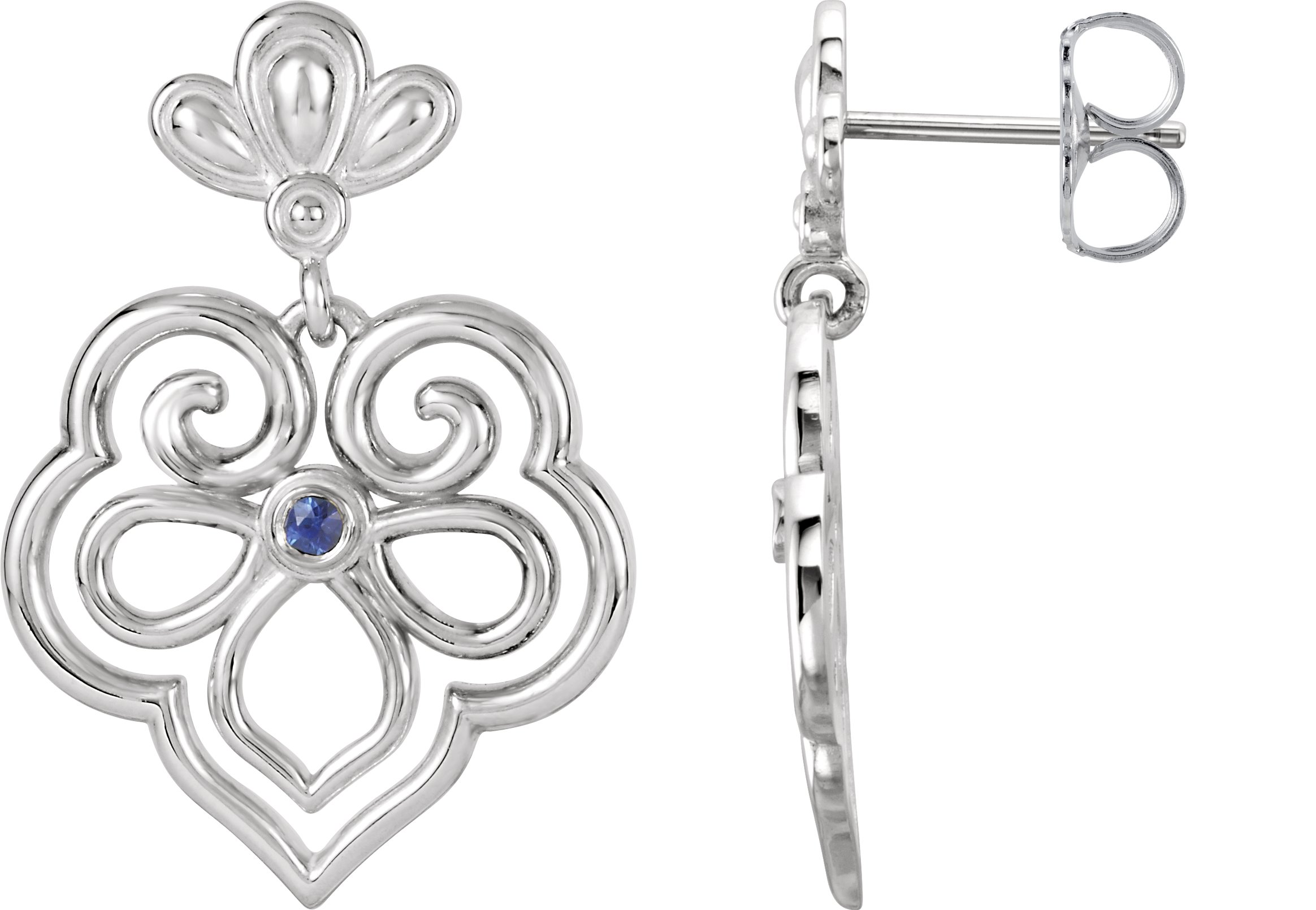 Sterling Silver and 14K White Blue Sapphire Earrings