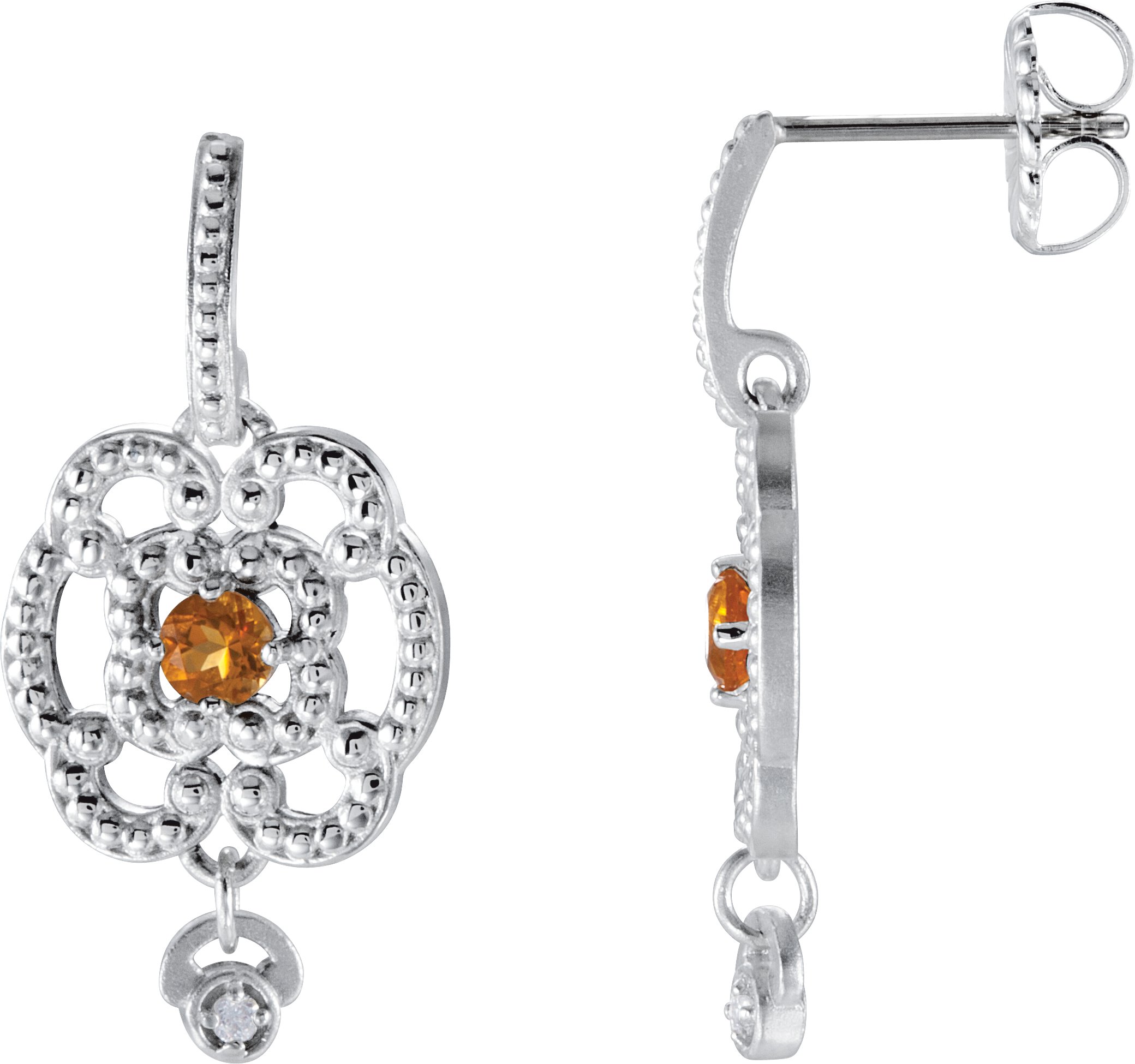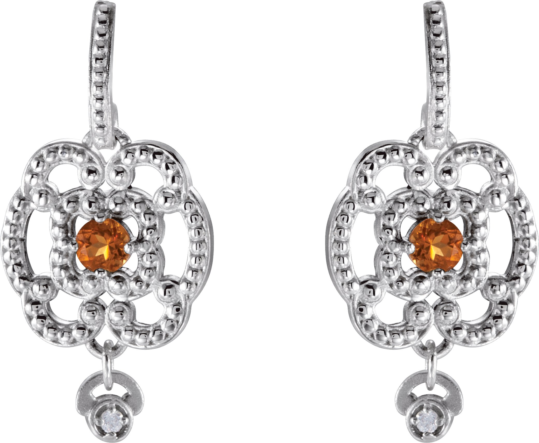 Description: Genuine Citrine And .03 CTW Diamond Earrings