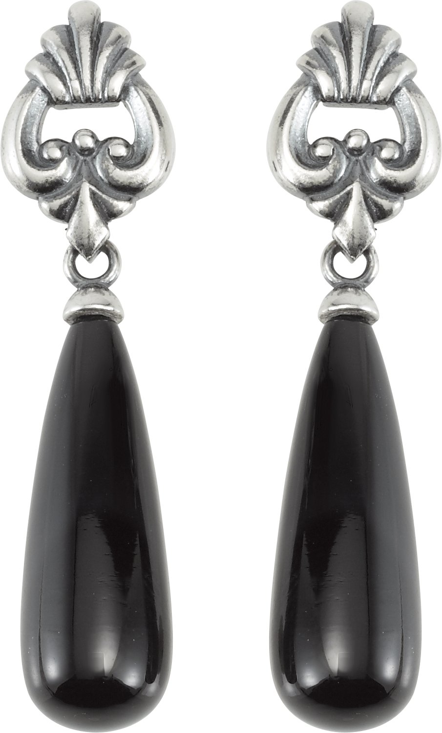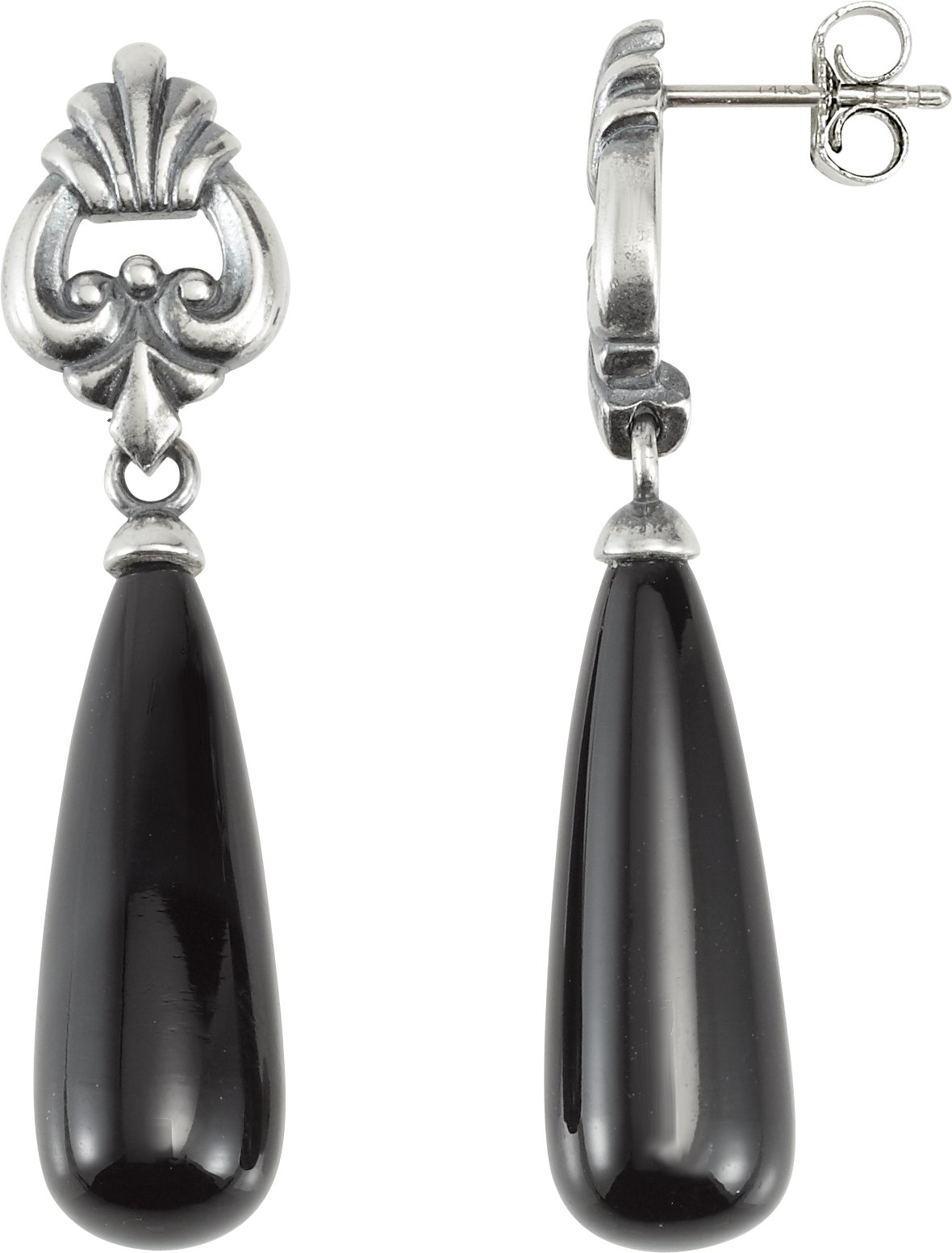 Sterling Silver and 14K White Onyx Vintage Inspired Briolette Earrings