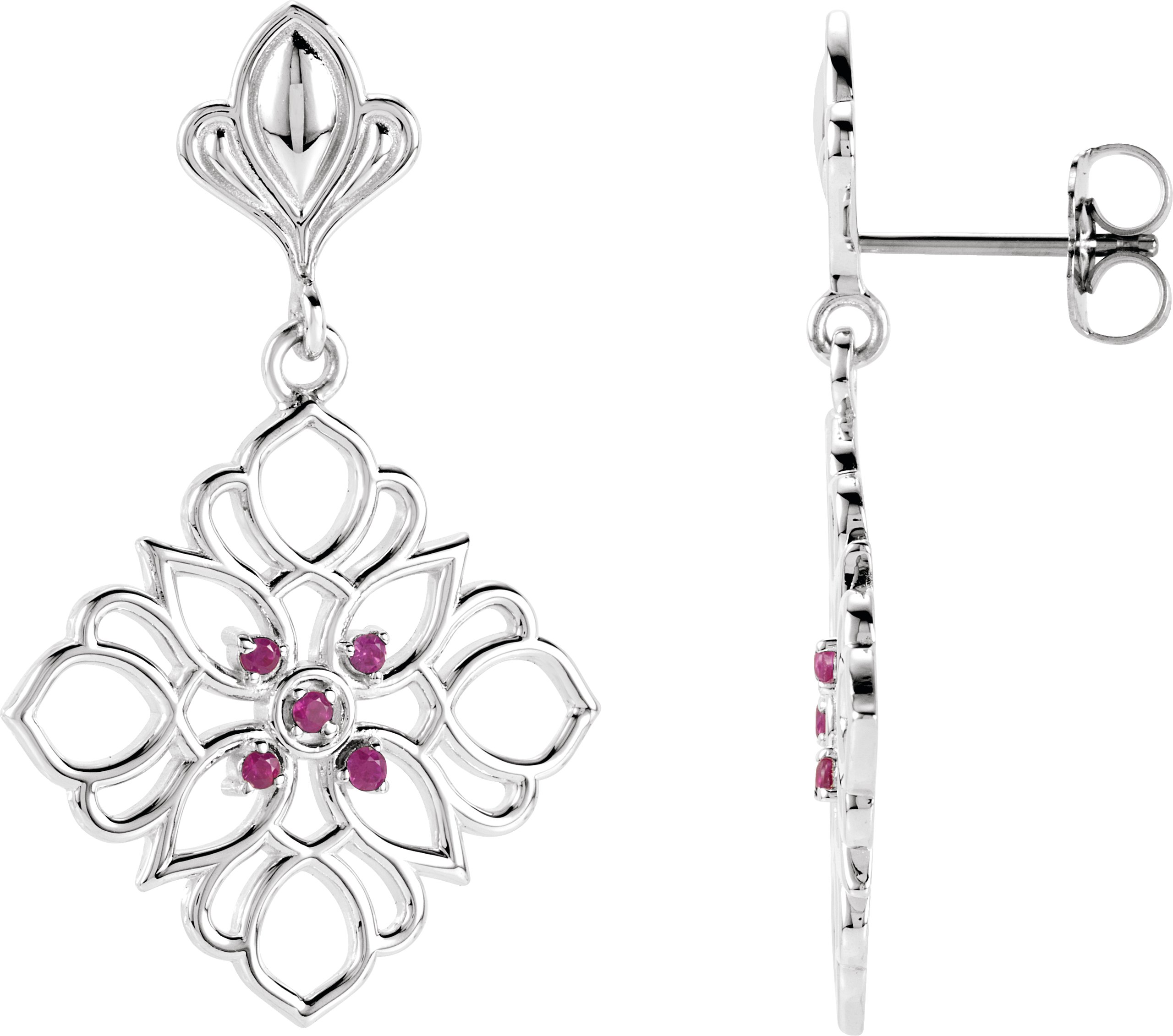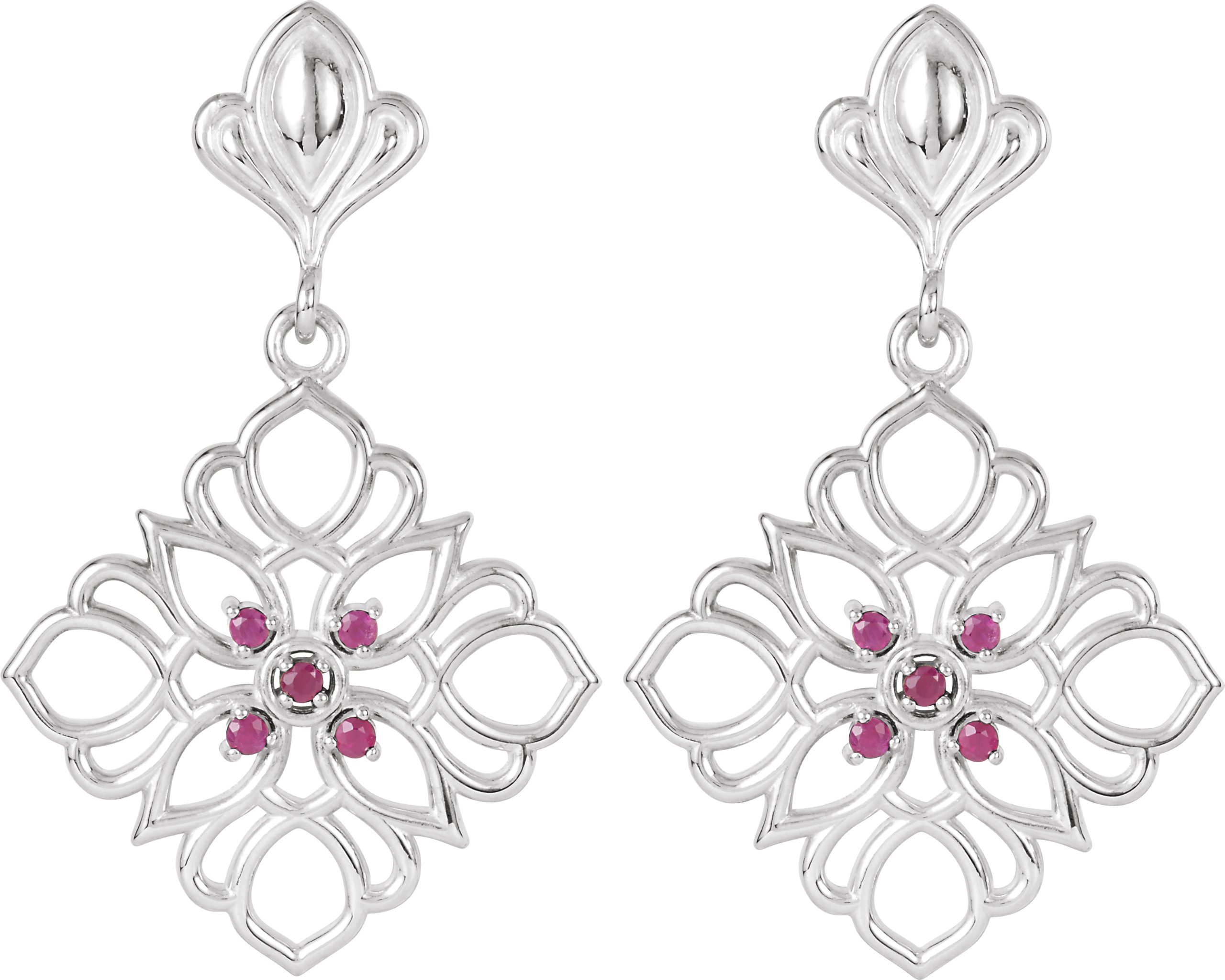 Sterling Silver and 14K White Ruby Decorative Earrings