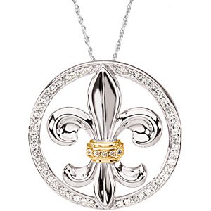 Sterling Silver & 14K Yellow Cubic Zirconia Fleur de lis 18" Necklace Ref. 2554747