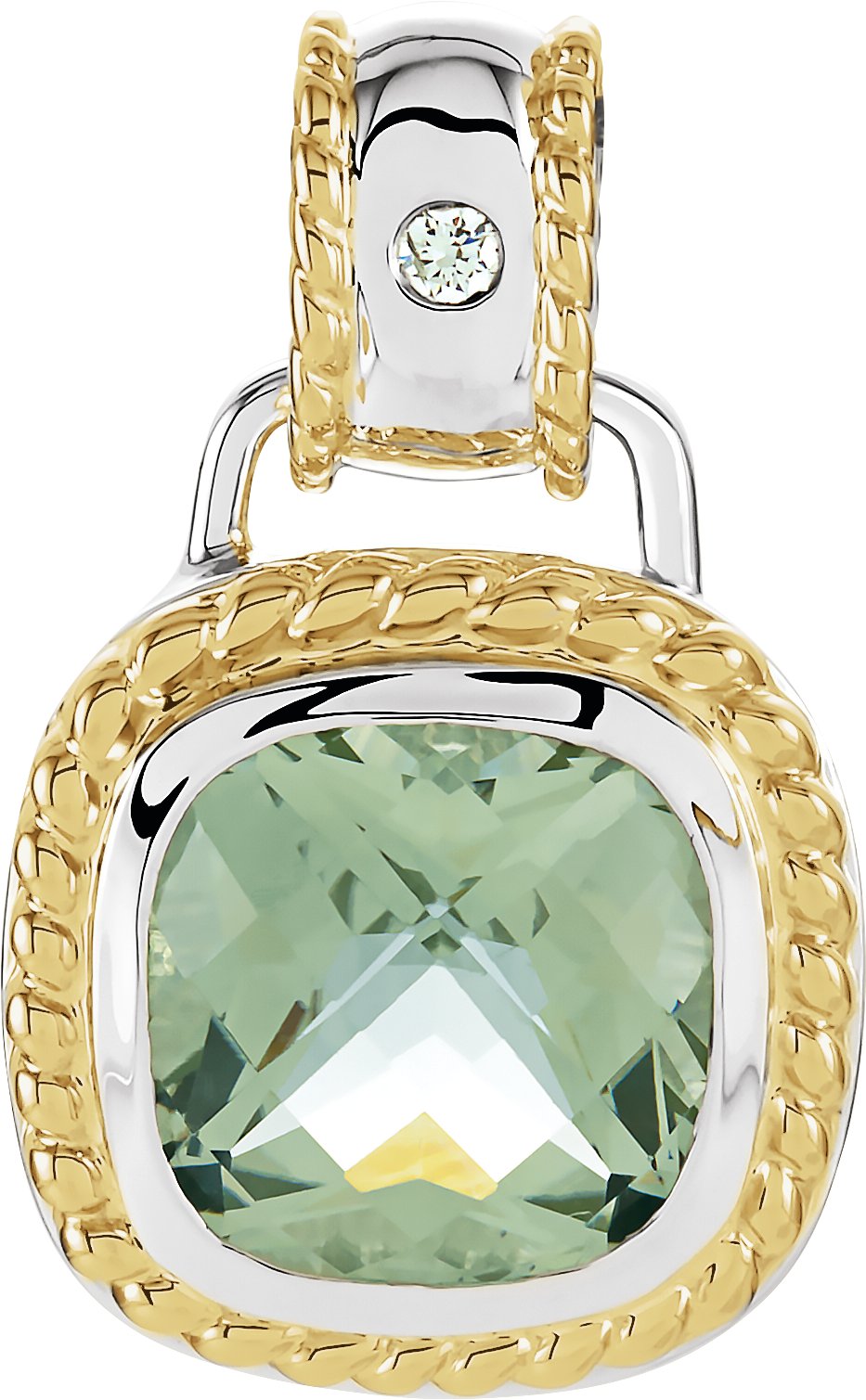 Sterling Silver & 14K Yellow Green Quartz & .04 CTW Diamond Pendant