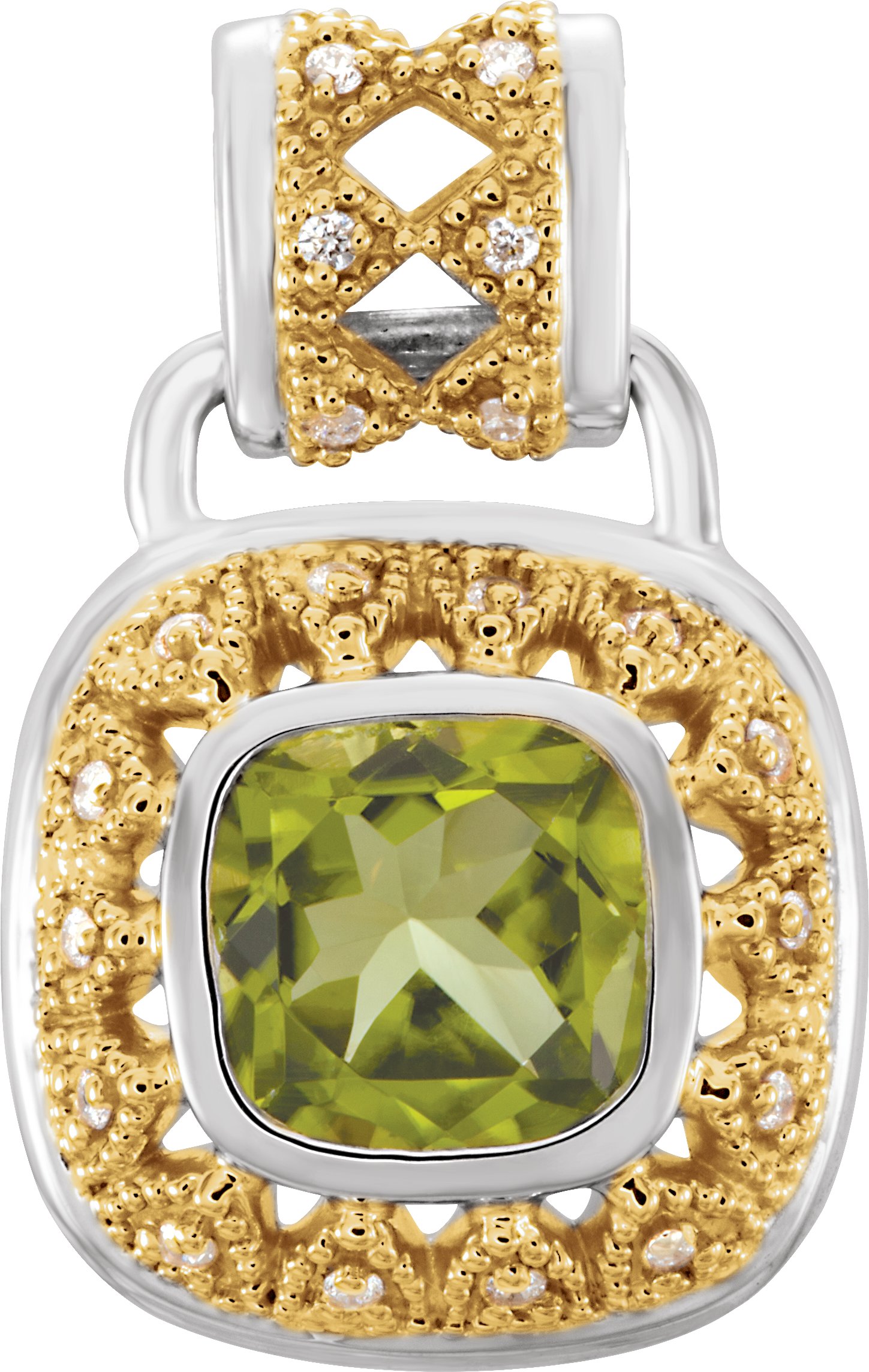 Sterling Silver and 14K Yellow Peridot and .125 CTW Diamond Pendant