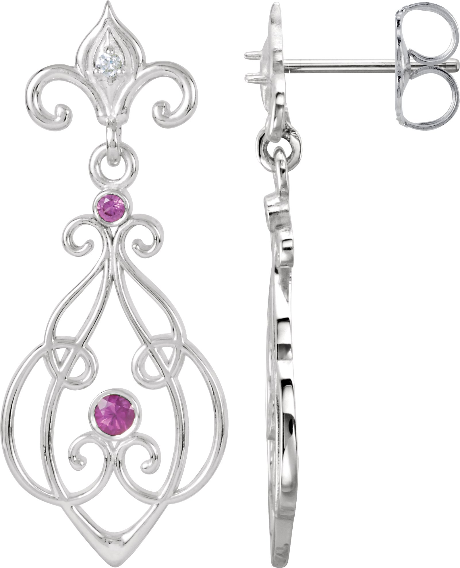 Description: Genuine Ruby And .025 CTW Diamond Dangle Earrings