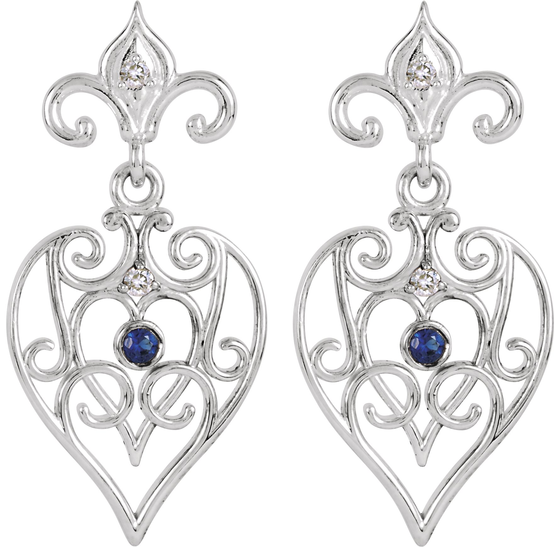 Sterling Silver with 14K White Post Sapphire and .04 CTW Diamond Earrings