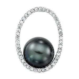 Tahitian Pearl and Diamond Oval Pendant 11mm .33 CTW Ref 243279