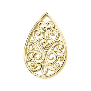 Teardrop Filigree Pendant. No bail. Can be hung from a cord or chain using a cow-hitch assembly. Available in 14K Yellow or 14K White Gold.