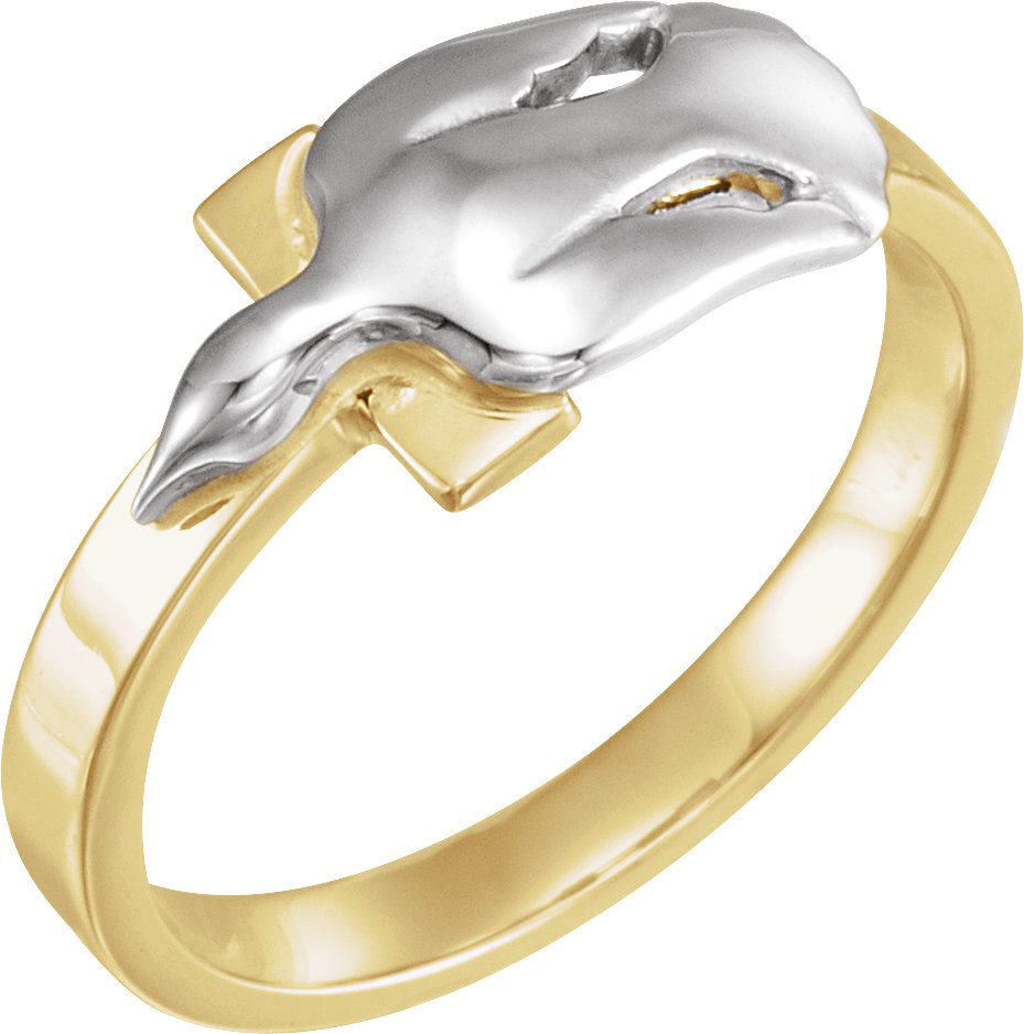 Two Tone Cross & Holy Spirit Ring | 7.5 mm Wide