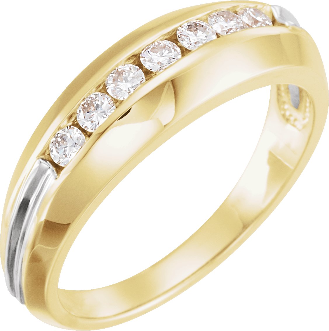 Two Tone Gents Diamond Ring | 3/8 Carat TW. Ref 9682. Set with 7ea 02.50 MM (02.44 - 02.50) Full Cut, I1 ROUND FULL CUT G-H GENUINE DIAMOND.