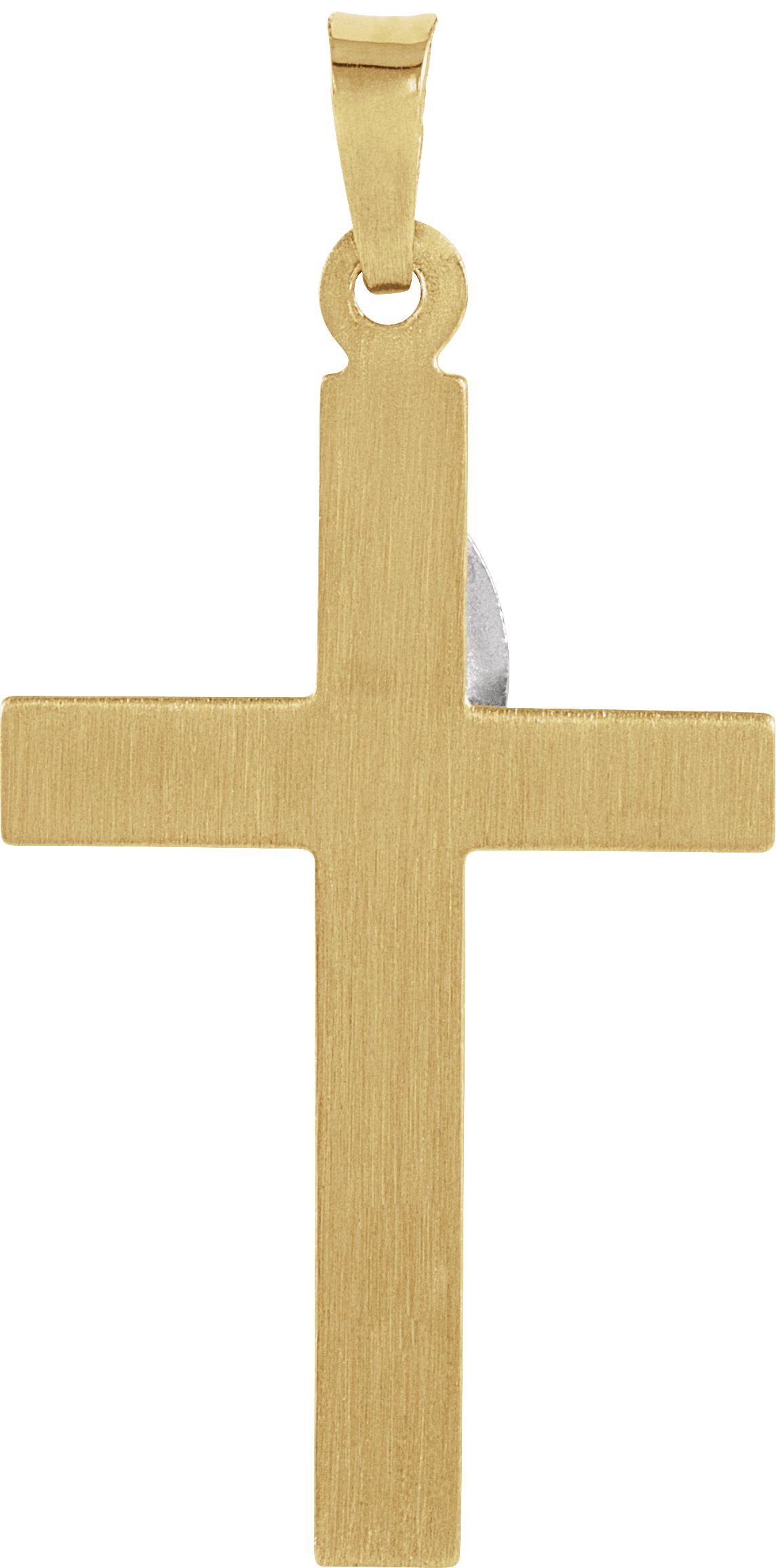 Two Tone Hollow Cross Pendant | 25 x 16 mm. 14K Yellow & White Gold.